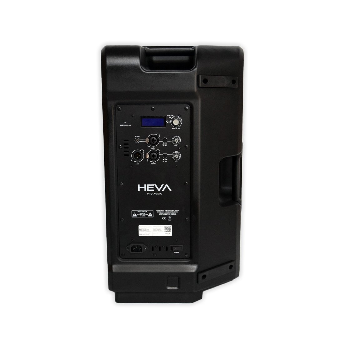 BAFLE ACTIVO HEVA PRO AUDIO 12″ BLUETOOTH-3 CANALES-2 VIAS-124dB-500W RMS-DSP LCD DISPLAY-TWS LINK