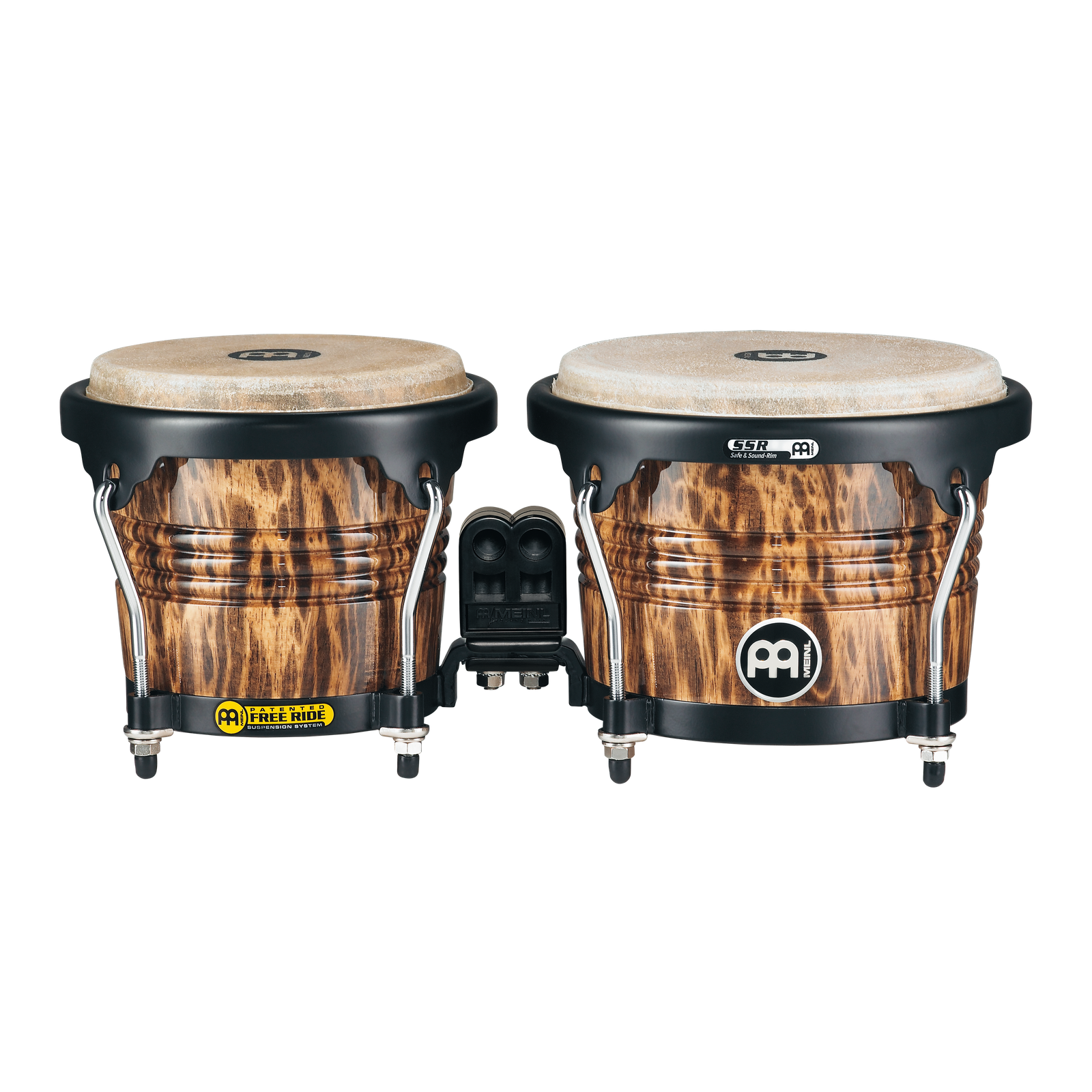 Bongo de madera Designer Series 6 3/4″ & 8″. Sistema de suspension Free Ride, Hardware negro, parches de bufalo, color lepoard burl